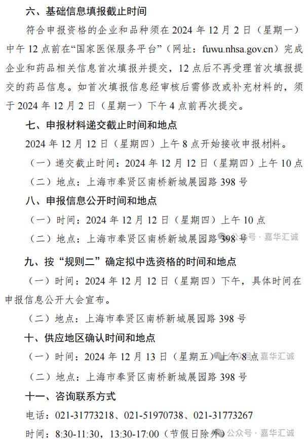 企业基础信息填报、申报材料递交和申报信息公开、确定拟中选资格、供应地区确认相关时间节点及咨询联系方式如下: