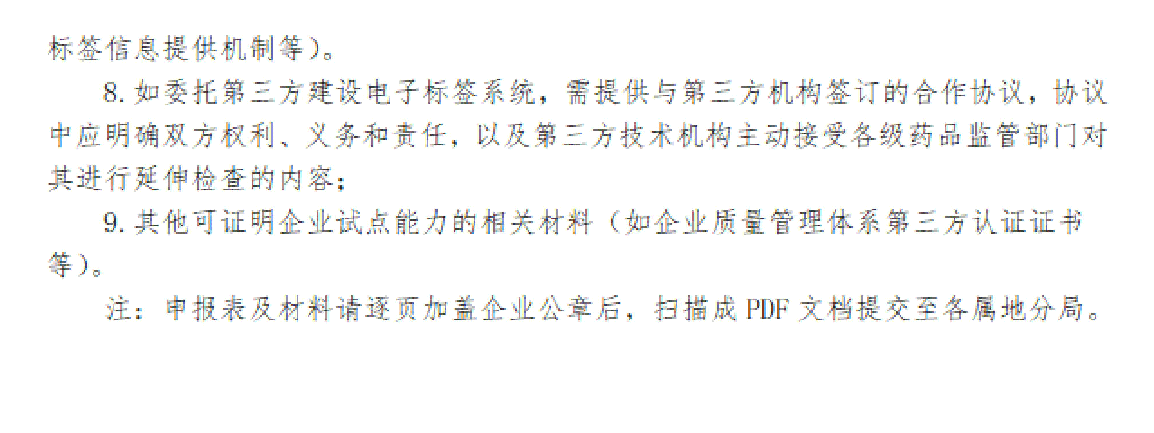 (二)试点企业可自行建设或使用第三方技术机构建设的电子标签系统,系统应符合《通知》中关于电子标签系统的要求。