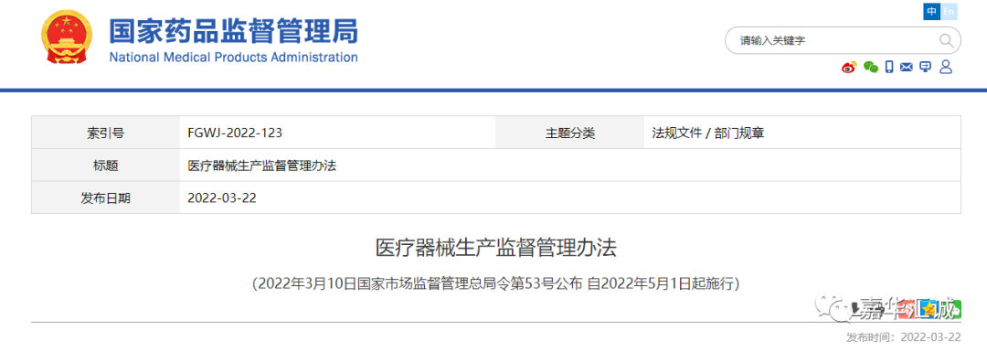 重磅!《医疗器械生产监督管理办法》《医疗器械经营监督管理办法》发布,自2022年5月1日起施行